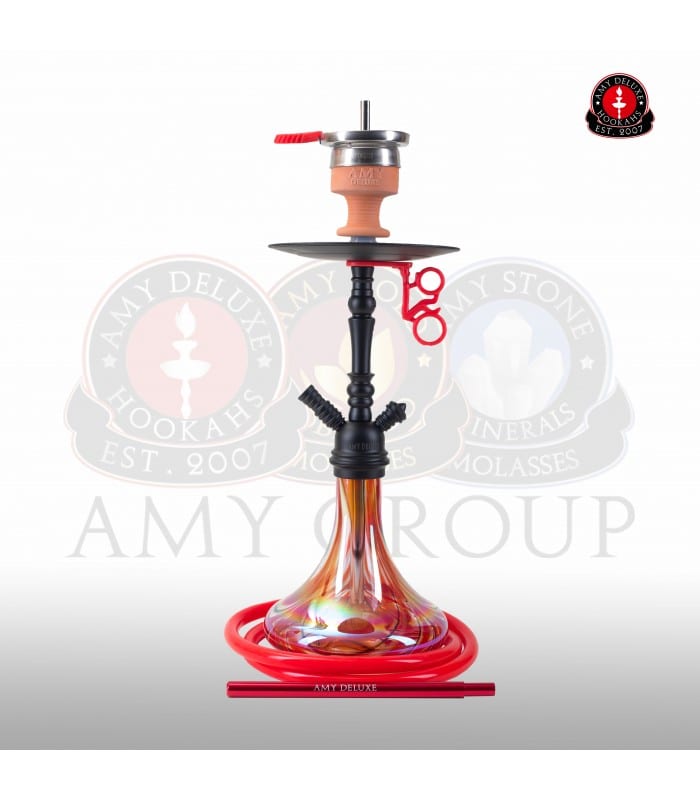Amy Deluxe staat bekend om haar kwalitatief goed geproduceerde waterpijpen! Elke product van dit merk is met de uiterste zorg ontworpen en geproduceerd. Je mag er dan ook van uitgaan dat als je een waterpijp van Amy koopt, dat je dan ook echt een goed product in handen hebt. De waterpijp wordt geleverd met een AMY Deluxe ” Zwart Chimney” tabakskop!